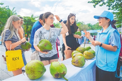 游客刘雯雯喝着清甜的椰子水,脸上洋溢着幸福的笑容,“非常好喝!椰子很甜,和三亚一样甜!我们计划玩玩海,吃吃清补凉,感受一下三亚的浪漫。”