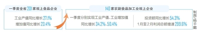 本报讯(海南日报全媒体记者邵长春 通讯员秦秀凤 杨兴旺)今年一季度,海南食品工业发展实现“开门红”:全省201家规上食品企业延续高增长势头,工业产值、增加值分别同比增长27.1%、23.4%,其中,工业增加值增速高出全国食品工业增加值17.3个点,排名全国前列。重点行业农副食品加工业成为食品工业高增长的主力军。一季度,140家农副食品加工业规上企业分别实现工业产值、工业增加值同比增长34.2%、50.4%,其中,工业增加值高出全国农副食品加工业增加值44.3个点,处于全国前三。此外,这些企业一季度投资额同比增长54.3%,1月至2月利润总额增速299.6%。
