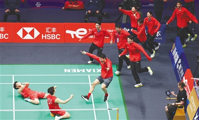 据新华社厦门5月4日电(记者丁文娴 付敏)4日,厦门凤凰体育馆,在现场超过一万名观众的呐喊声中,中国队3:1击败劲敌韩国队,连续第四次、历史第14次夺得苏迪曼杯世界羽毛球混合团体锦标赛冠军。