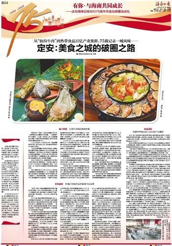 从田间地头的农产品、街头巷尾的饭店小吃,到延续16载的定安端午美食文化季品牌,再到以新型食品加工为三大特色产业之一的定安塔岭工业园逐步崛起,75年不间断的铅字里,书写了定安“美食之城”的变迁。铿锵有力的笔触也以不同的脉络与视角,持续描绘着定安美食的不同侧面。