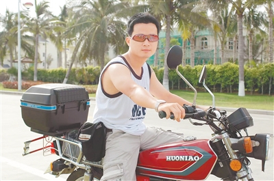 张杰在三亚驻站时经常骑摩托车去采访。受访者供图