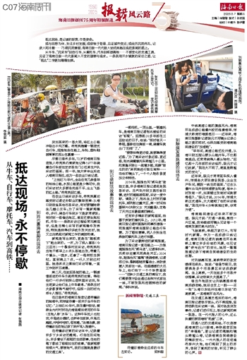 在交通工具匮乏落后的年代,海南日报记者尝尽苦头,仍不畏艰难,坚持活跃在采访第一线。面对各类突发事件,记者们逆行而上,抵达新闻的第一现场。在一代代报人的心中,这么执着的原因唯有“热爱”二字。
