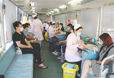 无偿献血车前,队伍排得很长。他们中,既有编辑记者,也有行政管理和经营部门的干部职工;既有初次献血的“新手”,也有多次参与无偿献血的“老面孔”。