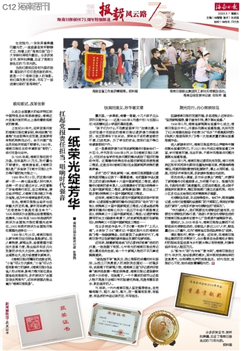 回望海南日报的发展历程,多名老报人这样评价:“坚持新闻理想,善于宣传引导,勇于舆论监督。”