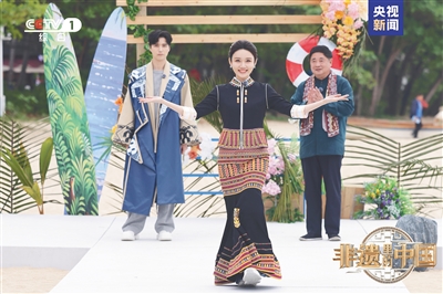 这边一曲唱罢,那边模特登场。节目中,当身着黎锦创新服饰的模特们轮番走上T台,被誉为中国纺织业“活化石”的黎锦正焕发新生。