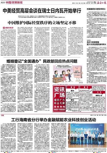 中美经贸高层会谈在瑞士日内瓦开始举行