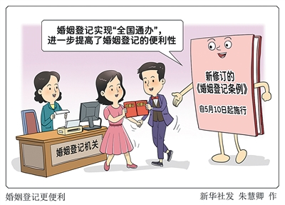 新修订的《婚姻登记条例》自5月10日起施行,其中规定婚姻登记实现“全国通办”,进一步提高了婚姻登记的便利性。民政部近日印发修订后的《婚姻登记工作规范》,并就“全国通办”政策等社会关心的问题回答了记者提问。问:婚姻登记“全国通办”的具体受理范围是什么呢?