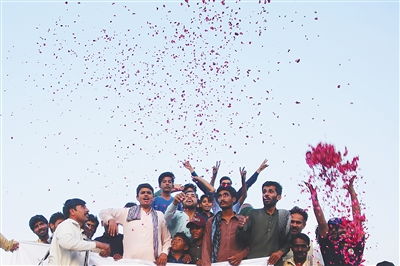 5月10日,在巴基斯坦东部旁遮普省木尔坦市,人们在巴基斯坦和印度宣布停火后庆祝。新华社发