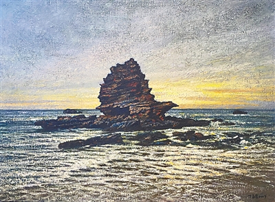 地域文化作为艺术创作的特殊标识,承载着独特的历史记忆与文化密码。海南画家长期以本土文化为创作源泉,邓子芳的《黎家三月美如画》运用小写意墨彩的技法,生动再现黎村苗寨的春日盛景;马飞的《海湾一角》以饱满构图展现海与礁石的共生共存;丁孟芳的《龙门扬帆》以油画的厚重质感,表现大海的波澜壮阔;齐英石、刘小莉在人物画中以遒劲线条勾勒黎族风情;卢向玲、陈为云则通过热带花卉展现地域生态之美。