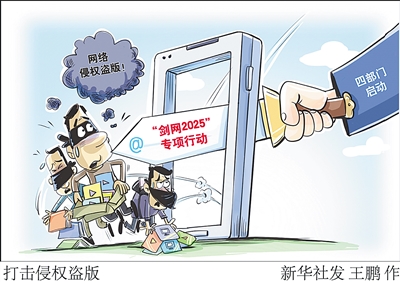 新华社北京5月16日电 (记者史竞男)国家版权局、工业和信息化部、公安部、国家互联网信息办公室四部门近日联合启动打击网络侵权盗版“剑网2025”专项行动,这是全国持续开展的第21次打击网络侵权盗版专项行动。本次专项行动于5月至11月开展,将聚焦6个主要方面开展重点整治: