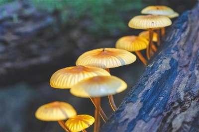 ③五指山阿陀岭,经过雨水和溪水洗涤后的小皮伞属真菌。