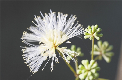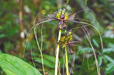 ①海南热带雨林国家公园霸王岭片区,薄叶猴耳环花朵正在绽放。