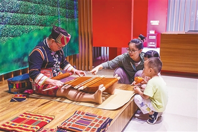 活动还特邀黎族纺染织绣、制陶、编织及苗族蜡染刺绣等四个非遗项目代表性传承人进行现场展演,市民游客在专业讲解员带领下,穿梭于黎族织锦文物之间,通过多媒体影像与实物陈列,沉浸式体验海南少数民族的迁徙史诗与生活哲学,近距离感受了民族文化的魅力。