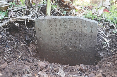 2003年,在通潮阁遗址附近山坡上发现的《通潮飞阁碑》残碑。 陈超 摄