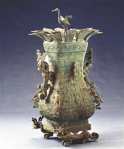 1923年,在河南新郑出土的春秋时期考古文物中有铜器名为“莲鹤方壶”,即在壶盖之周骈列莲花瓣二层,并于莲花瓣之中央立起一展翅之白鹤,郭沫若先生评价此件出土文物为“以植物为图案,器在秦汉以前者,已为余所仅见之一例”,又描述鹤之突破上古时代鸿蒙,踌躇满志,正欲飞翔,正是春秋初年由殷周半神话时代脱出时,一切社会情形及精神文化之反映。