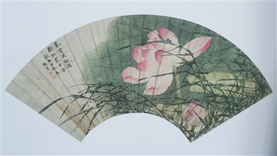 清代冯宁《荷花图》(扇页)。 缪士毅 翻拍