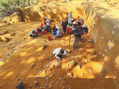“我们一开始觉得100平方米的面积不算大,比较容易挖掘,没想到刚开始一个月就有了非常丰富且重要的发现。由于遗物密集分布,挖掘工作只能缓慢进行。”侯亚梅表示。