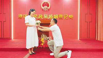 为保障登记高峰工作有序开展,我省民政部门通过增设临时窗口、安排工作人员提前到岗、组织志愿者现场引导等举措,优化登记流程,全方位为新人提供高效便捷的服务。