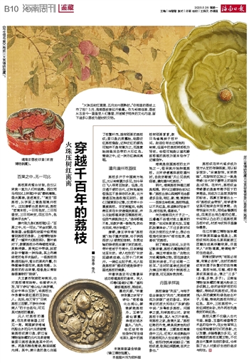 ■ 刘亭亭 李凡“火珠压树红离离,五月炎州荔熟时。”你那里的荔枝上市了吗?5月,海南荔枝季拉开帷幕。作为岭南佳果,荔枝从古至今一直备受人们喜爱,并被赋予特殊的文化内涵,留下诸多以荔枝为题材的文物。