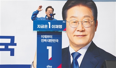 李在明在韩国首都首尔参加总统选举竞选活动。新华社发