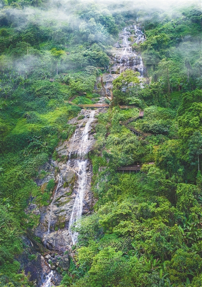 “九分山半分水半分田”的地理特征,造就了琼中独具风情的热带雨林景观。琼中抓住环热旅游公路开通的契机,打造“雨林赛事”品牌,新增雨林风光之旅、红色茶香之旅等乡村精品旅游路线,探索“交通+旅游+文化”融合发展模式,交出森林康养旅游产业亮眼“成绩单”——2025年第一季度,琼中接待游客总数同比增长11.07%,累计增速全省排名第二。