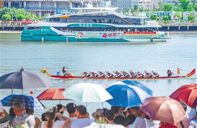 2025“海口杯”端午国际龙舟邀请赛吸引大量市民游客观看。