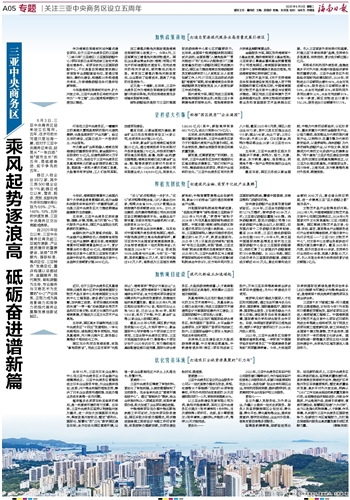 五年来,三亚中央商务区抓实建链、强链、补链、延链,全力打造“4+2”现代服务产业体系,园区产业呈现出生机勃勃的发展势头。