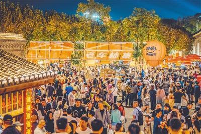 6月2日晚,游客在河北省唐山市丰南区河头老街景区游玩。新华社发