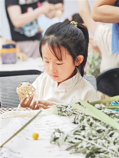 5月30日,北京市西城区西长安街街道西单地区党群服务中心,小朋友在参加端午节亲子活动。