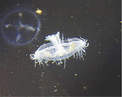 桃花水母在水中漂游。