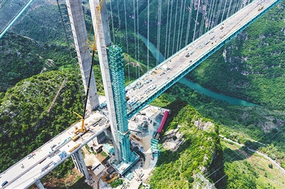 图为6月6日拍摄的贵州花江峡谷大桥观光电梯安装现场。新华社发