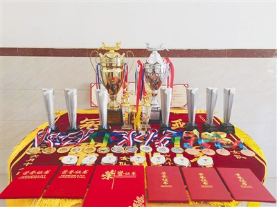 昌江十月田镇王炸村龙舟女队获得的证书和奖杯。 王海丽 摄