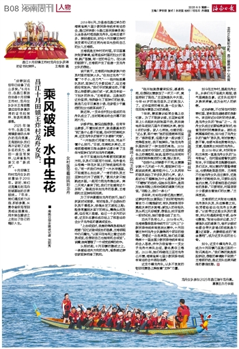 功夫不负有心人。2019年4月,在海南黎族苗族传统节日“三月三”少数民族传统体育竞技比赛中,十月田镇王炸村龙舟女队摘得两个项目的桂冠。凭借这一出色表现,她们成功赢得第十一届全国少数民族传统体育运动会入场券,并作为我省唯一一支女子龙舟代表队出征,最终勇夺三等奖。2023年,她们相继在三亚市龙舟公开赛、海南省第七届少数民族传统体育运动会中再创佳绩。