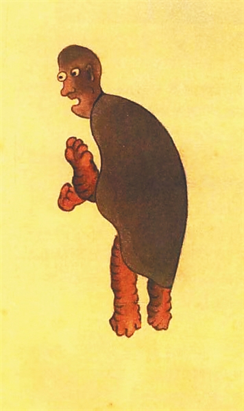 例如“海和尚”,图谱中记录:“鳖身人首,而足稍长,广东新语具载,然未有人亲见,则难图。康熙二十八年,福宁州海上纲得一大鳖,出其首则人首也,观者惊怖投之海,此即海和尚也,杨次闻图述。”此图可见,聂璜是通过渔民口述所作,以秃顶和尚身披龟甲的模样创作了“海和尚”的造型。综合相关记载,发现此动物应是棱皮龟中的一种。之所以被认知为海和尚,是因为棱皮龟的脑袋颇像一个光头的得道高僧,且体形硕大,像人的身长一般,且爬动速度很快,非常灵活,被渔民们形容成了人形。又因棱皮龟被抓后,眼睛里排出盐液体,就像人流泪一般,这在古人眼里大概就是“万物有灵”的景象了。