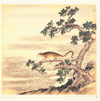 对动物造型的塑造,多以静态画面为主,即使猛兽,在画面里也被画家表现出宁静、温顺、祥和的状态。因为这是一部御制作品,需要遵循上意,没办法像民间绘画般自由地体现动物的动感和野性,而是需要围绕“百兽呈祥”的主题。