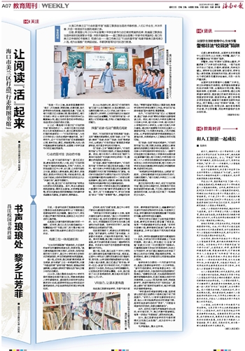 “学校每天引导学生静读15分钟,每周开展师生读书分享活动。”昌江十月田学校校长叶保吉介绍,该校还定期举办读书节等活动。如今,校园里随处可见学生在长廊上阅读和讨论的场景。在学校的引导下,他们逐渐养成自主阅读的好习惯。