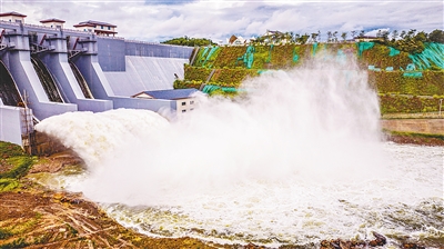 为应对台风“蝴蝶”带来的持续强降雨压力,天角潭水库于6月12日开启闸门泄洪。特约记者 吴文生 摄