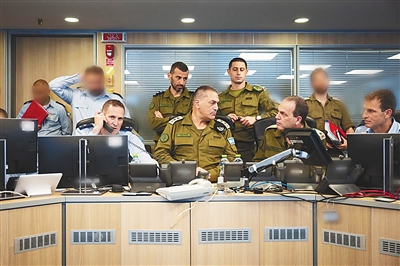 6月13日,以军总参谋长扎米尔(中)在以色列空军战情室监看以军对伊朗的打击。新华社发