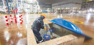 六月十四日,在位于洋浦经济开发区的中国石化海南炼化公司,工作人员在排查安全隐患,确保生产正常运行。