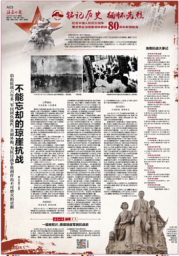 本报讯(海南日报全媒体记者傅婕)2025年是中国人民抗日战争暨世界反法西斯战争胜利80周年。为铭记历史,缅怀先烈,海南日报全媒体编辑中心、中共海南省委党史研究室联合推出视频《这一幕幕,不能忘》,通过一组老照片,带网友回望那段不容忘却的历史。