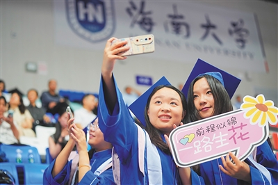 6月18日,海南大学2025年本科生毕业典礼暨学位授予仪式现场,毕业生合影留念。海南日报全媒体记者 张茂 摄