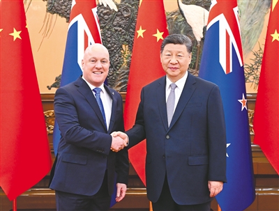 新华社北京6月20日电(记者董雪)6月20日上午,国家主席习近平在北京人民大会堂会见来华进行正式访问的新西兰总理拉克森。习近平指出,建交50多年来,中新关系历经国际形势风云变幻,双方始终相互尊重、携手前行,两国关系长期走在中国同西方发达国家关系前列,给两国人民带来实实在在的福祉。在中新全面战略伙伴关系开启第二个10年之际,双方要共同推动中新关系在新的10年取得更大发展,更好造福两国人民。