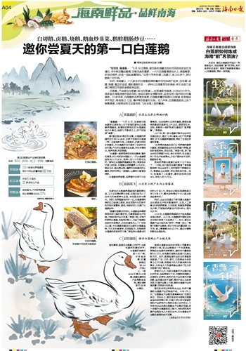 2016年,白莲鹅获得国家农产品地理标志登记保护。2021年,白莲鹅被中国饭店协会评选为琼菜十大品牌之一。如今,澄迈白莲鹅产业已经形成“育种—养殖—加工—销售”完整产业链条,预计今年出栏量突破180万羽,线上销售额占比达37%,通过冷链物流销往全国各地。