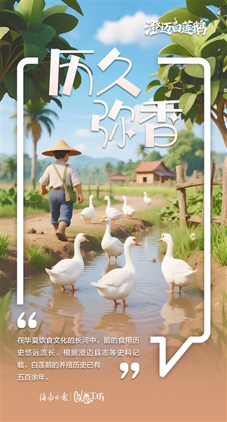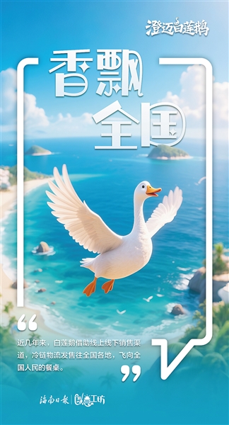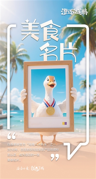 本报讯 澄迈白莲鹅如何成为一张美食名片,炼成海南“鹅”界顶流,吸引食客纷至沓来?海南日报新媒体推出AI创意海报,带你一探究竟。