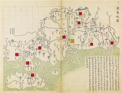 1636年《皇明职方地图》标注了部分海南岛古县。