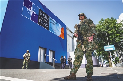 6月23日,在荷兰海牙,安保部队在北约峰会外执勤。新华社发