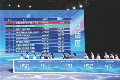 本环节为角逐“个人答题王”和团队冠军争夺战,4支代表队各派1名代表参赛,最高得分者将成为答题王,同时将计入团队总积分,决出一等奖。最后两名选手旗鼓相当,同时答对多道题,最后时刻,陵水代表队队员蒋一帆冷静应对,夺得“个人答题王”,并帮助陵水代表队获得一等奖。