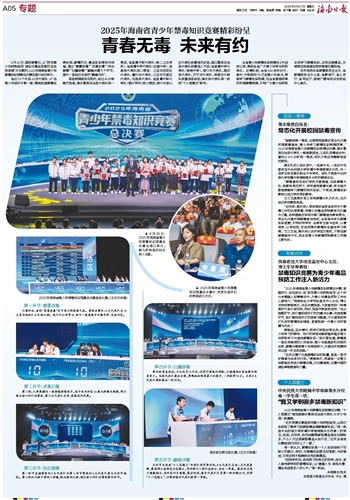 6月26日,国际禁毒日,以“防范青少年药物滥用 建设无毒品危害的自由贸易港”为主题的2025年海南省青少年禁毒知识竞赛总决赛在海口成功举行。省内18个市县29支代表队、87名青少年选手齐聚一堂,围绕我国禁毒法律法规、禁毒历史、毒品知识等有关领域,通过“雷霆战毒”“求真识毒”“快乐禁毒”“扫魔除毒”“巅峰决毒”5个环节,展开一场别开生面的“巅峰对决”。