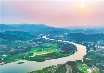 俯瞰昌化江蜿蜒曲折穿过的乐东黎族自治县山荣村和抱湾村。海南日报全媒体记者 王程龙 摄