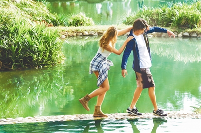 游客在位于保亭的呀诺达雨林文化旅游区开心游玩。